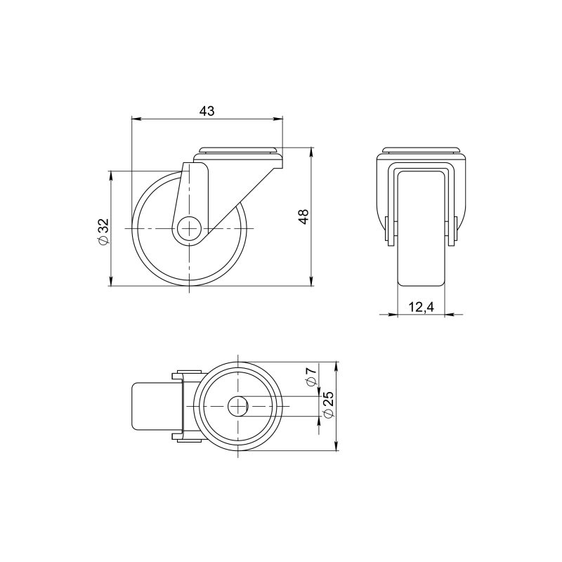 - Модель: Опора колесная WL/B-30P/15kg пластик, под винт M6
