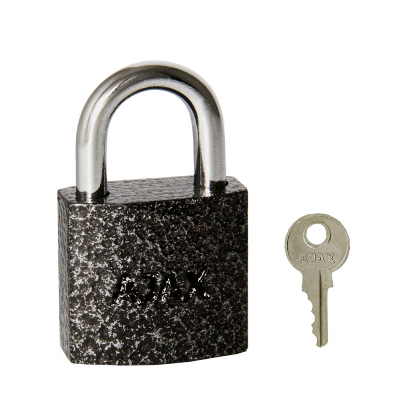 Навесной замок Ajax серии PD-01 предназначен для запирания внешних и внутренних дверей, оснащенных проушинами. Чугунный корпус с антикоррозийным покрытием, закаленная дужка, автоматическое запирание, 3 английских ключа в комплекте. Упакованы в пакет. Гара
