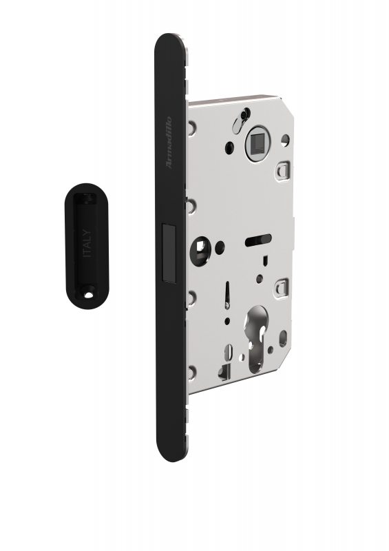 Замок межкомнатный магнитный под цилиндр с ответной планкой GRAVITY.PRO G02.196.50.85 BL черный